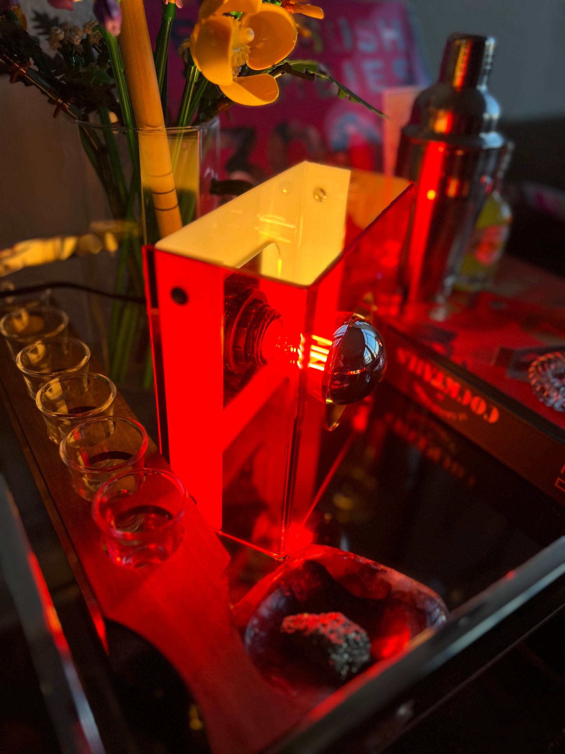 ✨ Lampe cube Space Age Rouge – design rétro-futuriste fait main (édition limitée)